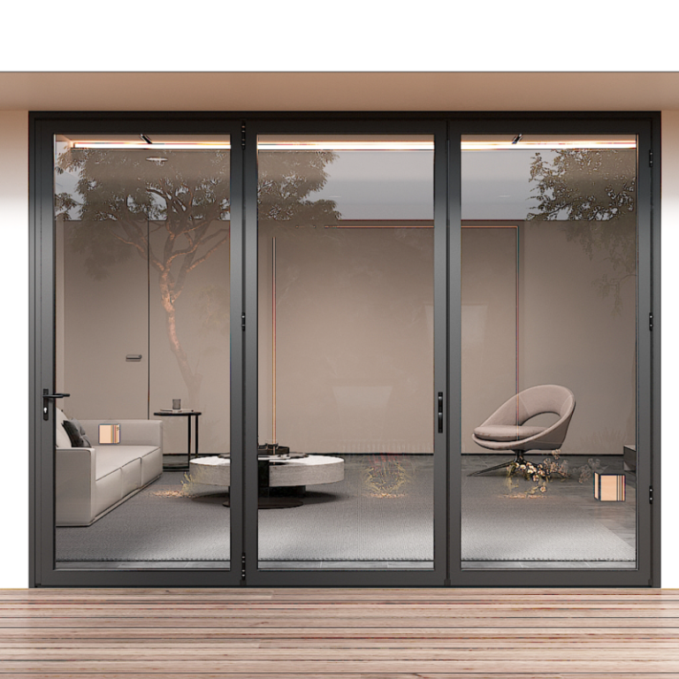A high-performance thermal break folding door featuring hinged panels for smooth operation. Designed to reduce heat transfer while maximizing light, ventilation, and open-space flexibility.